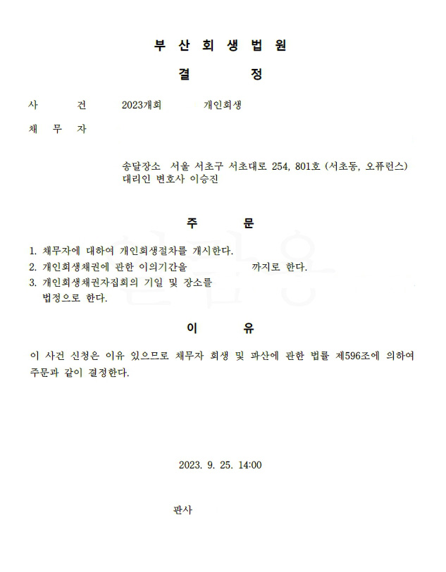 약 83%의 탕감률을 보이면서 개인회생을 진행 중인 의뢰인은 앞으로 성실하게 상환하는 것은 물론 면책까지 받을 수 있도록 노력 중인 상황인데요.