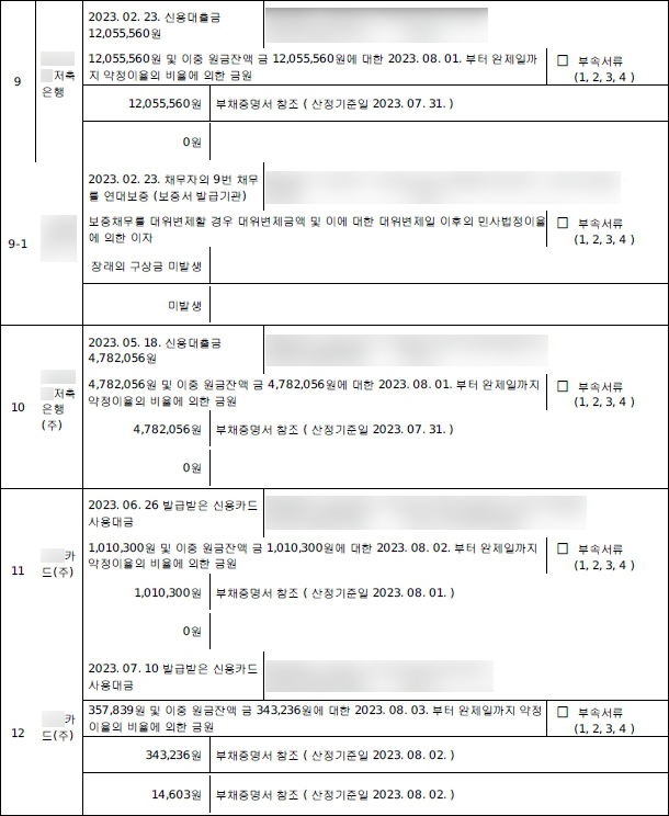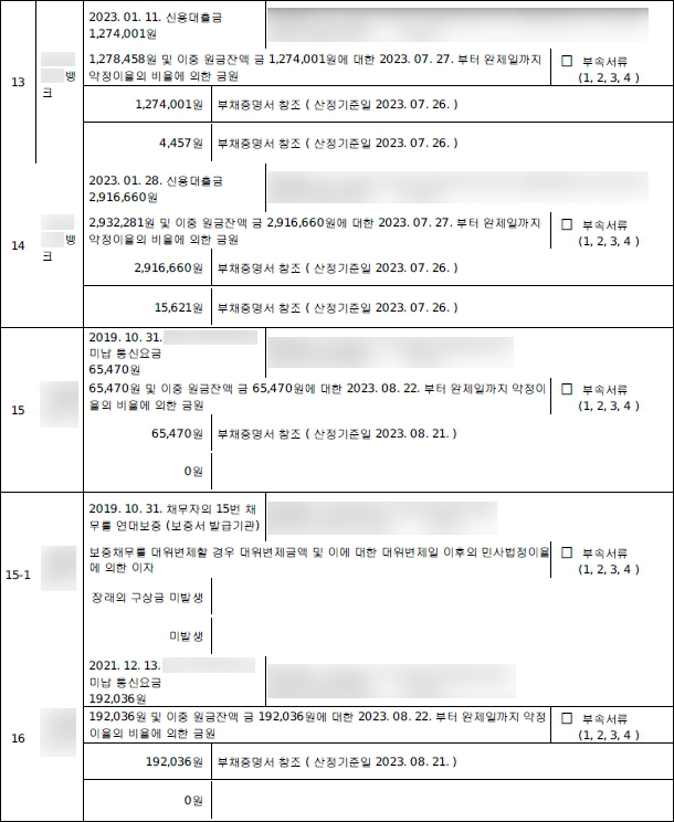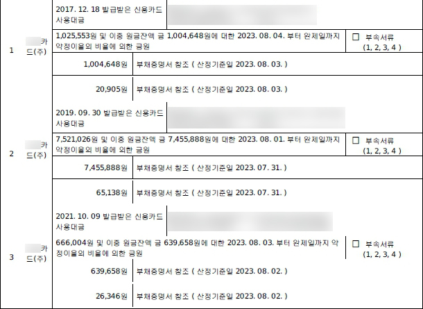 이때까지는 채무가 있지 않았지만 성인이 되고 집안에 보탬이 되기 위해서, 건강이 급속도로 나빠진 조부모님의 병원비 등을 부담하기 위해서 대출과 신용카드를 사용한 것이 결국 개인회생을 신청하는 이유가 되었습니다.