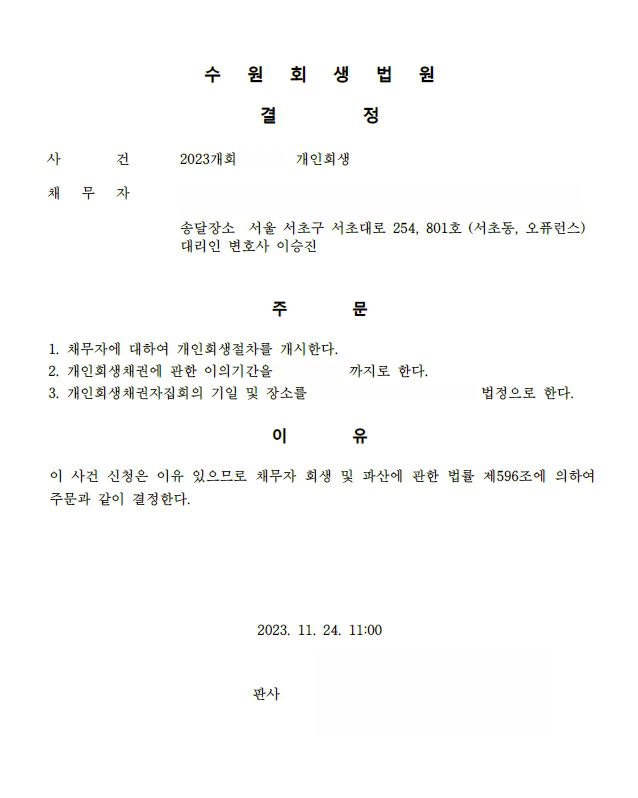 결국 개인회생을 신청하게 되었고 약 68%의 탕감률로 사건을 진행하게 되었으며 현재는 열심히 변제금을 납부하고 계신답니다.