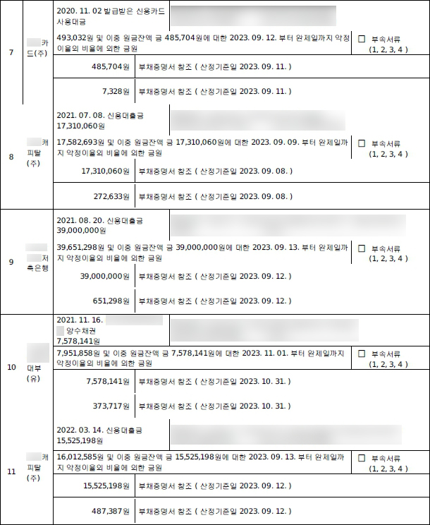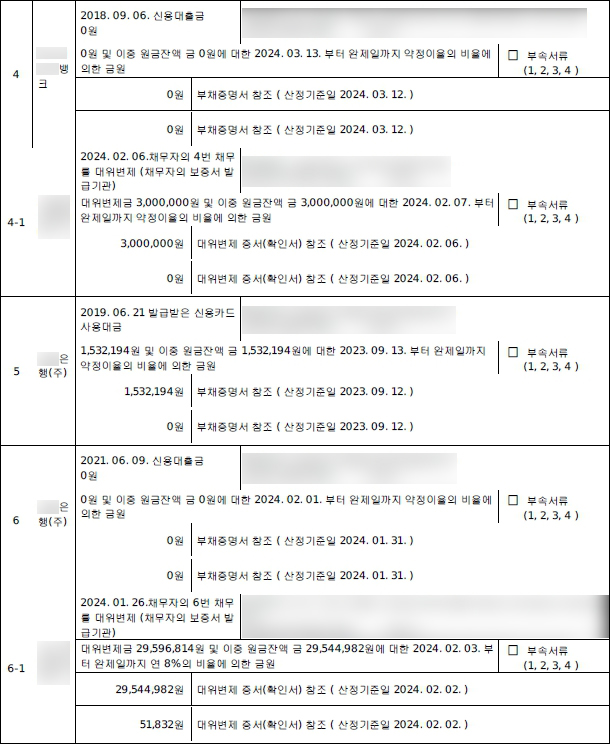 대신 기간을 36개월이 아닌 40개월로 책정하여 변제계획안을 작성했고 결국 약 91%를 탕감 받으면서 사건을 진행하게 된 것입니다.