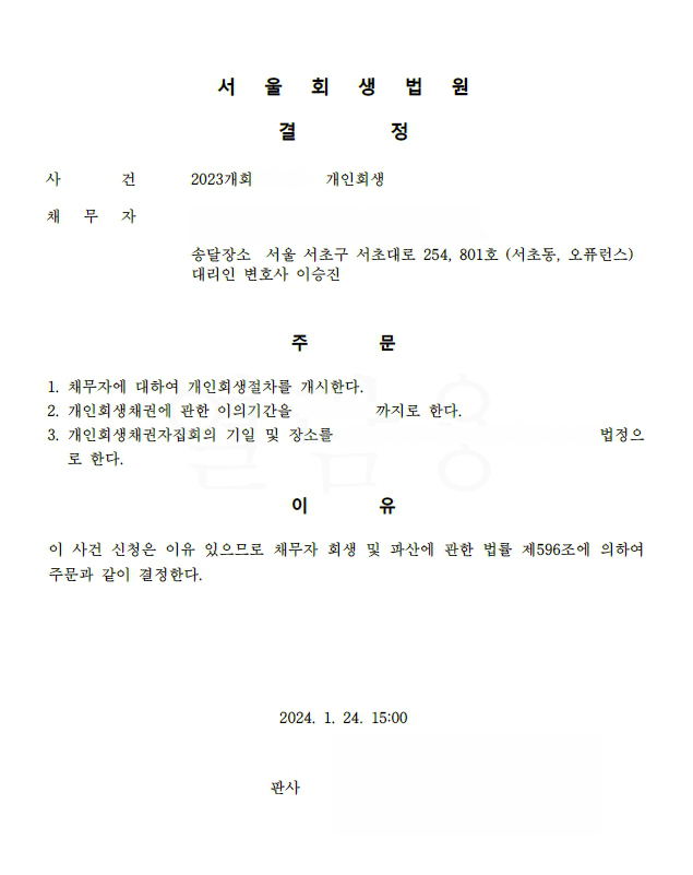 혹시라도 의뢰인처럼 힘든 상황에 처해 있다면 도움을 요청하여 채무 정리를 위한 노력을 해 보길 바랍니다.
